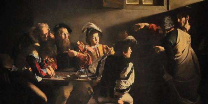 Matthieu a été célébré par le Caravage qui, dans son tableau très connu (cf. notre illustration), fait bien comprendre à quel point est surprenant le choix de Matthieu, le publicain, par le Christ pour être un de ses plus proches – un des Douze –, et c’est pourquoi le thème de la miséricorde est aussi si fort et si présent dans tout l’Évangile de Matthieu : « Ce ne sont pas les gens bien portants qui ont besoin du médecin, mais les malades. Allez apprendre ce que signifie : "Je veux la miséricorde, non le sacrifice." En effet, je ne suis pas venu appeler des justes, mais des pécheurs » (cf. Mt 9,9-13 ).