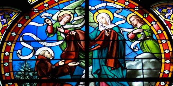 L’histoire de saint Simon Stock est l’occasion de découvrir la signification et la portée du scapulaire. Lorsque Notre Dame apparaît à Simon, elle tient dans sa main le scapulaire, une pièce d’habit de travail brun, et dit : « Voici un privilège pour toi et ceux du Carmel. Qui mourra ainsi revêtu sera sauvé. » En donnant le scapulaire, Marie souhaite habiller ses enfants du salut, que personne ne peut acquérir seulement par lui-même. Elle demande de coopérer au salut en mettant en pratique les commandements donnés par le Christ. Le scapulaire ne se substitue donc pas à la grâce du baptême, au contraire : porté au quotidien, il signifie que l’on travaille chaque jour à conformer sa vie à sa foi, laissant se déployer en nous la grâce de l’Esprit reçu originellement au baptême.