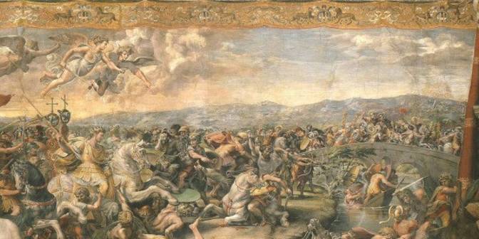 Le 28 octobre 312, au pont Milvius, Constantin livre bataille contre son adversaire, dont l’armée est deux fois supérieure en nombre, et il remporte une victoire décisive. Constantin, élevé dans le paganisme, se convertit alors et devient le premier empereur romain chrétien.