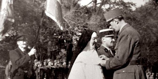 Mais elle voit aussi d’autres choses : elle se voit habillée en religieuse, avec un voile noir. Elle voit « un général de grande taille qui la décore et on l’honore pour toutes sortes d’actions qu’elle a fait pendant cette guerre ». Cela aussi se réalisera lorsque le général de Gaulle la décora de la Légion d’honneur en juillet 1945. Des témoins l’ont entendu lui glisser à l’oreille : « J’espère que vous n’êtes pas à Londres en même temps, en train de vous faire décorer par Churchill. »Mère Yvonne-Aimée de Malestroit a reçu cinq distinctions pour ses hauts faits de résistance :