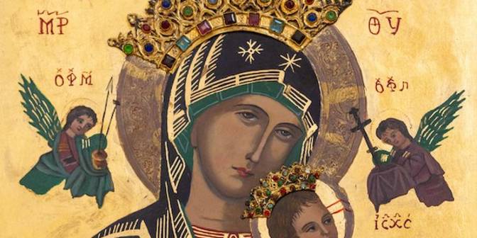 « Notre-Dame du Perpétuel Secours » est une icône de l’école crétoise qui se trouve aujourd’hui dans l’église Saint-Alphonse, à Rome. C’est une peinture sur bois, de style byzantin, qui semble remonter au XIIIe ou au XIVe siècle, et peut-être même avant. Elle représente une Vierge de la Passion, c’est-à-dire la Vierge Marie tenant en ses bras l’Enfant Jésus qui regarde les instruments de la Passion présentés par deux archanges. Le tableau, qui a opéré de nombreux miracles depuis son départ de l’île de Crète, fut par la suite gardé par les pères augustins jusqu’en 1798 (date de la prise de Rome par les troupes du Directoire) dans une église dédiée à l’évangéliste saint Matthieu, mais aujourd’hui disparue. Elle a été ensuite été confiée aux Rédemptoristes par le pape Pie IX en 1866. La fête de Notre-Dame du Perpétuel Secours est célébrée le 27 juin.