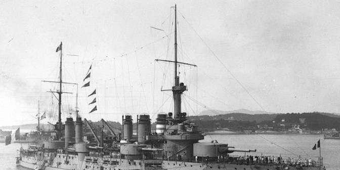 Construit en 1907 à La Seyne-sur-Mer, le Voltaire, cuirassé de type Danton – nom choisi telle une provocation calculée en cette période de tensions liées à la séparation de l’Église et de l’État, et qui a fait grincer des dents une marine restée très catholique –, a été lancé le 16 janvier 1909 et versé au service actif en 1911. Depuis qu’il a pris la mer, les accidents, nombreux, lui valent auprès des marins une réputation de navire maudit. Lorsqu’il appareille de Toulon le 6 octobre 1918 pour rejoindre Thessalonique, puis Moudra, les matelots sont inquiets et redoutent de sombrer avec ce navire porte-malheur. Peut-être est-ce l’une des raisons pour lesquelles beaucoup dans l’équipage arborent l’insigne, interdit car « calotin et contre-révolutionnaire », du Sacré Cœur.
