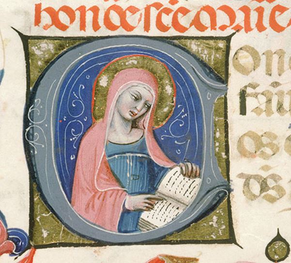 Pour comprendre la façon dont la personne de la Vierge Marie prend place dans l’Écriture sainte, il est cependant utile de préciser que la lecture de la Bible n’est pas figée : la Bible recèle en effet derrière le sens littéral des textes un sens caché, figuré, qui nous permet de discerner dans tout écrit différents sens, différents niveaux de compréhension : c’est la fameuse doctrine des quatre sens de l’Écriture sainte, fixée au Moyen Âge[1]. Grâce à ces principes d’interprétation, on peut comprendre que la Vierge Marie est préfigurée dans l’Ancien Testament, et qu’elle est figurée également dans l’Apocalypse. Sa présence discrète dans le Nouveau Testament se déploie ainsi dans tout l’espace biblique, de l’Ancien Testament à l’Apocalypse, selon des modalités différentes : figurée ou réelle, historique, dans les Évangiles et les Actes des Apôtres.
