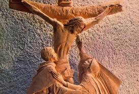 Or près de la croix de Jésus se tenaient sa mère et la sœur de sa mère, Marie, femme de Clopas, et Marie de Magdala. Jésus donc voyant sa mère et, se tenant près d’elle, le disciple qu’il aimait, dit à sa mère : « Femme, voici ton fils. » Puis il dit au disciple : « Voici ta mère. » Dès cette heure-là, le disciple l’accueillit comme sienne.