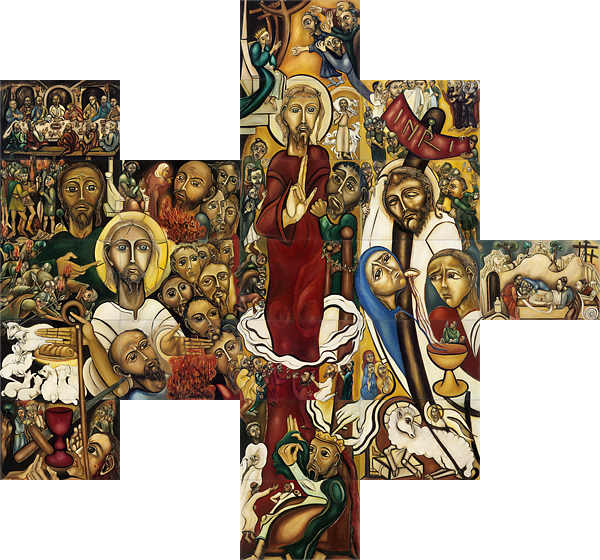 Françoise Burtz, riche d'une vaste culture biblique et patristique, peint des fresques théologiques qui nourrissent une catéchèse d'adultes.