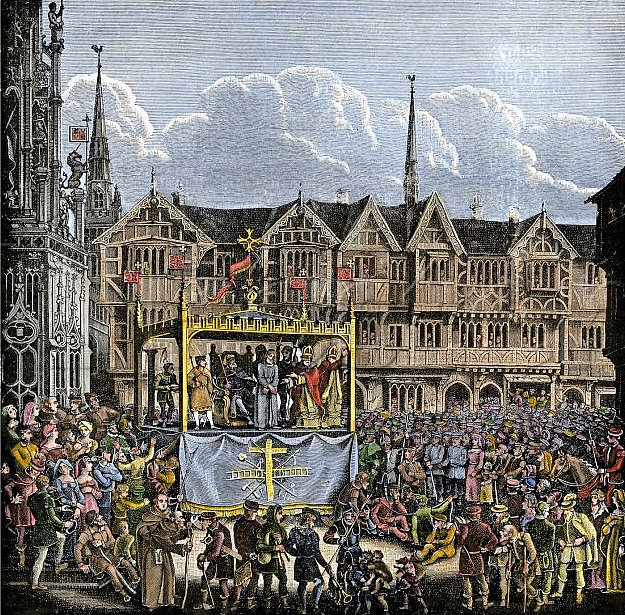 Au XIIIe siècle, l’instauration de la Fête-Dieu[1] par le pape Urbain IV, en 1264, permit d’organiser des processions, et des tableaux vivants qui représentent des scènes de l’Écriture sainte.