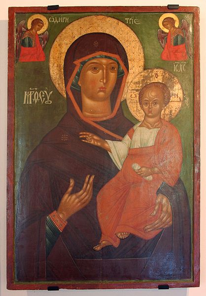 La Vierge "Hodiguitria" ("Celle qui montre le chemin"). La Theotokos porte Jésus et le désigne.