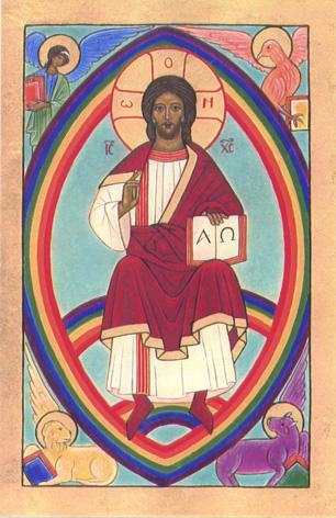 Le Christ est représenté par les lettres alpha (α ou Α) et oméga (ω ou Ω), car il est le principe et la fin de toutes choses (Ap 22, 13). Il est celui qui a inspiré tout l’univers créé (l’alpha, le principe), et celui qui reviendra au temps de la fin, pour le jugement et la résurrection (l’oméga, le dernier).