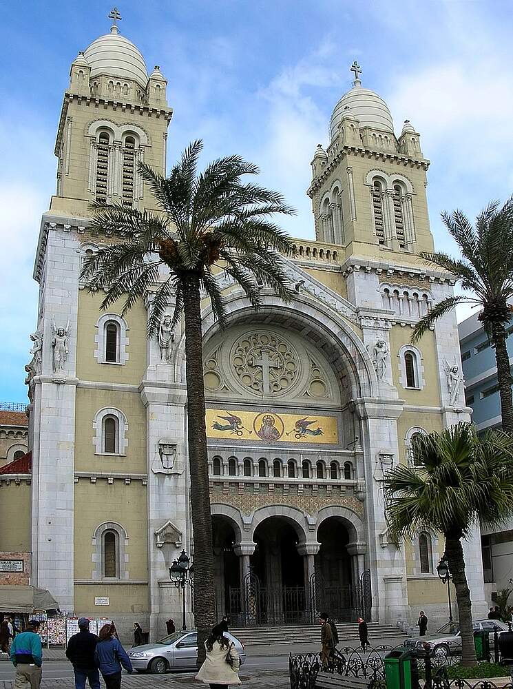 Cette cathédrale est dédiée à Notre Dame, avec la statue « Notre Dame de Carthage » qui provient de l’ex-cathédrale de Carthage ; elle est aussi dédiée à saint Vincent de Paul qui fut esclave à Tunis entre 1605 et 1607. La tradition raconte que durant son incarcération il chantait souvent le « Salve Regina (Salut reine, notre vie, notre douceur...) ». À la fin de sa vie, il obtint la libération de 1200 esclaves et il envoya à Tunis les prêtres qu’il avait formés pour assister les prisonniers, en leur transmettant la douceur de Marie.