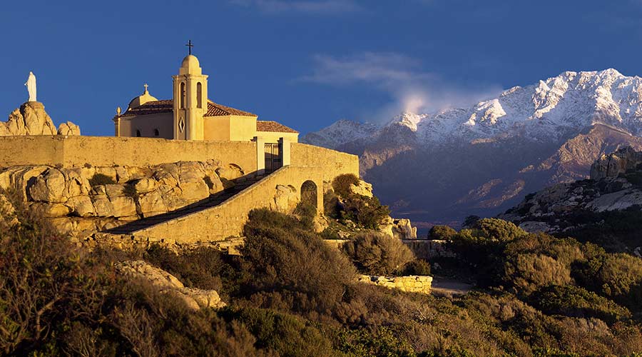 La chapelle Notre-Dame de la Serra de Calvi, qui surplombe le golfe et protège Calvi, a été construite à l’origine comme un lieu d’ermitage pour les prêtres. Elle a été bâtie entre 1850 et 1860, sur les ruines d’un sanctuaire édifié en 1470 et détruit lors du siège de 1794.