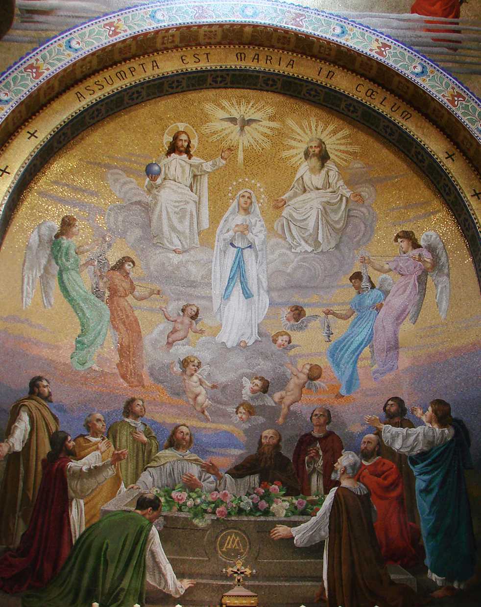 Aujourd’hui, l’Église célèbre la glorieuse Assomption au Ciel de Marie avec son corps et son âme. Les deux dogmes de l’Immaculée Conception et de l’Assomption sont intimement liés. Ils proclament tous deux la gloire du Christ Rédempteur et la sainteté de Marie, dont la destinée humaine est dès à présent parfaitement et définitivement réalisée en Dieu.
