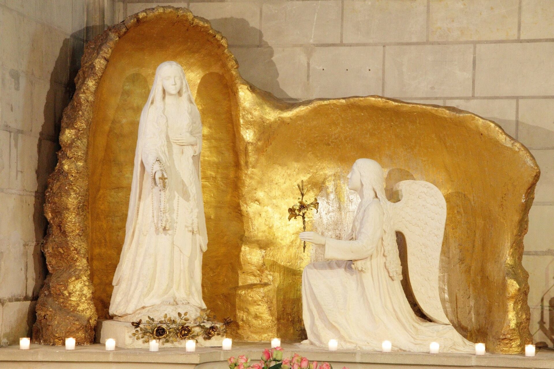 En la fête de l’Immaculée Conception, le 8 décembre 1947, trois petites filles, Jacqueline AUBRY (12 ans), Jeanne AUBRY sa sœur (7 ans) et Nicole ROBIN leur cousine (10 ans), vont prier à l’église de l’Ile Bouchard, en Touraine. La Vierge Marie leur apparaît. Ces apparitions vont durer jusqu’au 14 décembre. La Vierge Marie a demandé en particulier la prière pour la France et la prière pour les pécheurs, et fait une promesse de bonheur aux familles.