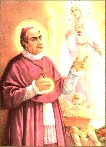 Partout où il passe, il établit l’Archiconfrérie du saint Cœur de Marie [en lien avec l’église Notre Dame des victoires à Paris] et recommande la récitation du chapelet en famille. C’est par l’intercession de la Mère de Dieu qu’il réalise les plus surprenantes conversions. « Pendant qu’il prêchait, son visage rayonnait de la Charité dont brillait son âme : les paroles qui sortaient de ses lèvres, ou plutôt de son cœur, étaient telles que les assistants étaient souvent émus jusqu’aux larmes et, qui plus est, inclinés à tendre d’un cœur sincère vers une vie meilleure et plus . Aussi lui arrivait-il d’obtenir plus que de salutaires améliorations, le renouvellement des mœurs, qu’il confirmait efficacement en accomplissant au nom de Dieu d’extraordinaires miracles. »[2]