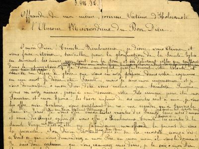 En la fête de la Trinité, le 9 juin 1895, Thérèse a composé une prière intitulée : Offrande de moi-même, comme victime d’holocauste à l’amour miséricor...