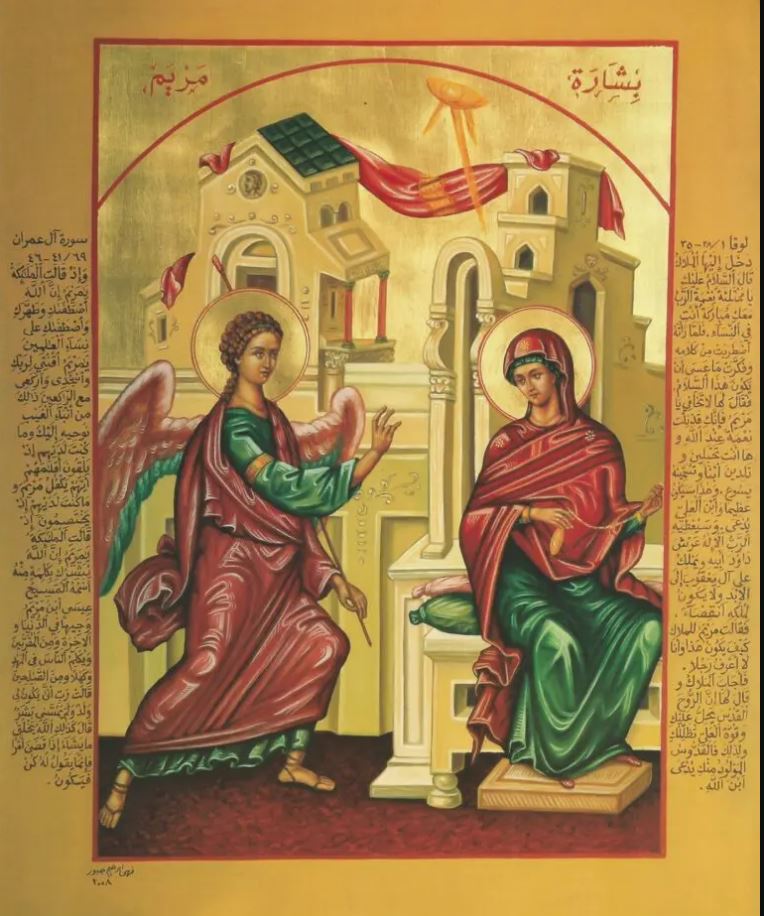 « Mémoire de l’annonce à la Vierge de la conception divine, et Incarnation du Verbe dans la Vierge pure. L’ange Gabriel salua la « pleine de grâce » et il lui annonça qu’elle allait être la Mère du Sauveur attendu. Quand elle eut connaissance du plan divin, elle répondit : "Je suis la servante du Seigneur, qu’il m’advienne selon ta parole". Elle devint Mère du Verbe incarné et mérita d’être appelée Mère de Dieu, comme le proclame le troisième concile œcuménique à Éphèse en 431. La Vierge est aussi mère de tous les hommes et mère de l’Église, corps mystique du Christ. L’Église fête aujourd’hui l’Annonciation, comme préparation à Noël ; on en fait aussi mémoire le 25 mars, neuf mois avant Noël. La fête d’aujourd’hui nous prépare directement à la proche venue du Sauveur. Que par ses prières bénies, Dieu ait pitié de nous. Amen. »
