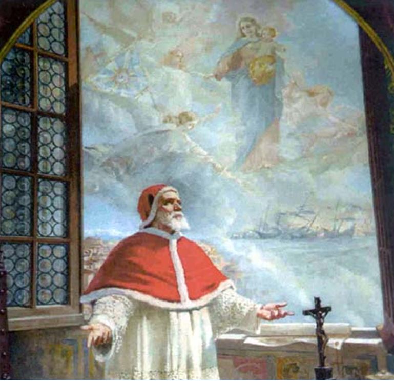 [3] Cette victoire a été attribuée à la prière du Rosaire et solennisée dans la liturgie par saint Pie V et ses successeurs. Voir à ce sujet l’article sur la fête de Notre-Dame du Rosaire , dans l’Encyclopédie mariale