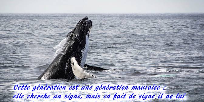 – Comment donc pouvez-vous croire à l’esprit dont les actions sont spirituelles si vous ne croyez pas aux miennes qui sont sensibles à vos yeux ? Ma vie en est pleine. Cela ne suffit-il pas encore ? Non. Je réponds moi-même que non. Ce n’est pas suffisant. A cette génération adultère et perverse qui cherche un signe, il ne sera pas donné d’autre signe que celui du prophète Jonas. En effet, comme Jonas est resté trois jours dans le ventre du monstre marin, ainsi le Fils de l’homme restera trois jours dans les entrailles de la terre. En vérité, je vous dis que les Ninivites ressusciteront le jour du Jugement avec tous les hommes et qu’ils se lèveront contre cette génération et la condamneront. Car eux, ils ont fait pénitence en entendant la prédication du prophète Jonas, et pas vous. Or il y a ici plus que Jonas. De même, la Reine du Midi ressuscitera, elle se dressera contre vous et vous condamnera, parce qu’elle est venue des confins de la terre pour entendre la sagesse de Salomon. Or il y a ici plus que Salomon.