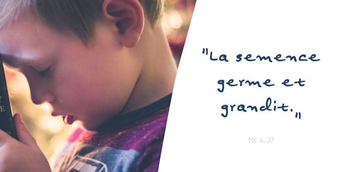 En ce temps-là, parlant à la foule, Jésus disait : « Il en est du règne de Dieu comme d’un homme qui jette en terre la semence : nuit et jour, qu’il dorme ou qu’il se lève, la semence germe et grandit, il ne sait comment. D’elle-même, la terre produit d’abord l’herbe, puis l’épi, enfin du blé plein l’épi. Et dès que le blé est mûr, il y met la faucille, puisque le temps de la moisson est arrivé. » Il disait encore : « À quoi allons-nous comparer le règne de Dieu ? Par quelle parabole pouvons-nous le représenter ? Il est comme une graine de moutarde : quand on la sème en terre, elle est la plus petite de toutes les semences. Mais quand on l’a semée, elle grandit et dépasse toutes les plantes potagères ; et elle étend de longues branches, si bien que les oiseaux du ciel peuvent faire leur nid à son ombre. » Par de nombreuses paraboles semblables, Jésus leur annonçait la Parole, dans la mesure où ils étaient capables de l’entendre. Il ne leur disait rien sans parabole, mais il expliquait tout à ses disciples en particulier.