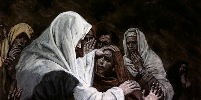 Jésus pose de nouveau ses mains, puis de nouveau les retire :