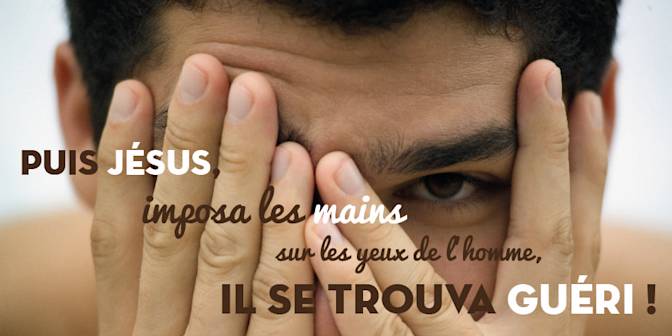 En ce temps-là, Jésus et ses disciples arrivèrent à Bethsaïde. Des gens lui amènent un aveugle et le supplient de le toucher. Jésus prit l’aveugle par la main et le conduisit hors du village. Il lui mit de la salive sur les yeux et lui imposa les mains. Il lui demandait : « Aperçois-tu quelque chose ? » Levant les yeux, l’homme disait : « J’aperçois les gens : ils ressemblent à des arbres que je vois marcher. » Puis Jésus, de nouveau, imposa les mains sur les yeux de l’homme ; celui-ci se mit à voir normalement, il se trouva guéri, et il distinguait tout avec netteté. Jésus le renvoya dans sa maison en disant : « Ne rentre même pas dans le village. »