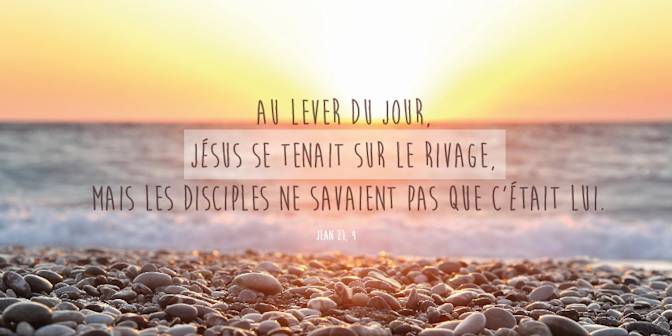 En ce temps-là, Jésus se manifesta encore aux disciples sur le bord de la mer de Tibériade, et voici comment. Il y avait là, ensemble, Simon-Pierre, avec Thomas, appelé Didyme (c’est-à-dire Jumeau), Nathanaël, de Cana de Galilée, les fils de Zébédée, et deux autres de ses disciples. Simon-Pierre leur dit : « Je m’en vais à la pêche. » Ils lui répondent : « Nous aussi, nous allons avec toi. » Ils partirent et montèrent dans la barque ; or, cette nuit-là, ils ne prirent rien. Au lever du jour, Jésus se tenait sur le rivage, mais les disciples ne savaient pas que c’était lui. Jésus leur dit : « Les enfants, auriez-vous quelque chose à manger ? » Ils lui répondirent : « Non. » Il leur dit : « Jetez le filet à droite de la barque, et vous trouverez. » Ils jetèrent donc le filet, et cette fois ils n’arrivaient pas à le tirer, tellement il y avait de poissons. Alors, le disciple que Jésus aimait dit à Pierre : « C’est le Seigneur ! » Quand Simon-Pierre entendit que c’était le Seigneur, il passa un vêtement, car il n’avait rien sur lui, et il se jeta à l’eau. Les autres disciples arrivèrent en barque, traînant le filet plein de poissons ; la terre n’était qu’à une centaine de mètres. Une fois descendus à terre, ils aperçoivent, disposé là, un feu de braise avec du poisson posé dessus, et du pain. Jésus leur dit : « Apportez donc de ces poissons que vous venez de prendre. » Simon-Pierre remonta et tira jusqu’à terre le filet plein de gros poissons : il y en avait cent cinquante-trois. Et, malgré cette quantité, le filet ne s’était pas déchiré. Jésus leur dit alors : « Venez manger. » Aucun des disciples n’osait lui demander : « Qui es-tu ? » Ils savaient que c’était le Seigneur. Jésus s’approche ; il prend le pain et le leur donne ; et de même pour le poisson. C’était la troisième fois que Jésus ressuscité d’entre les morts se manifestait à ses disciples.