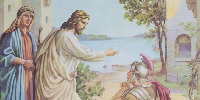 En ce temps-là, comme Jésus était entré à Capharnaüm, un centurion s’approcha de lui et le supplia : « Seigneur, mon serviteur est couché, à la maison, paralysé, et il souffre terriblement. » Jésus lui dit : « Je vais aller moi-même le guérir. » Le centurion reprit : « Seigneur, je ne suis pas digne que tu entres sous mon toit, mais dis seulement une parole et mon serviteur sera guéri. Moi-même qui suis soumis à une autorité, j’ai des soldats sous mes ordres ; à l’un, je dis : “Va”, et il va ; à un autre : “Viens”, et il vient, et à mon esclave : “Fais ceci”, et il le fait. » À ces mots, Jésus fut dans l’admiration et dit à ceux qui le suivaient : « Amen, je vous le déclare, chez personne en Israël, je n’ai trouvé une telle foi. Aussi je vous le dis : Beaucoup viendront de l’orient et de l’occident et prendront place avec Abraham, Isaac et Jacob au festin du royaume des Cieux. »