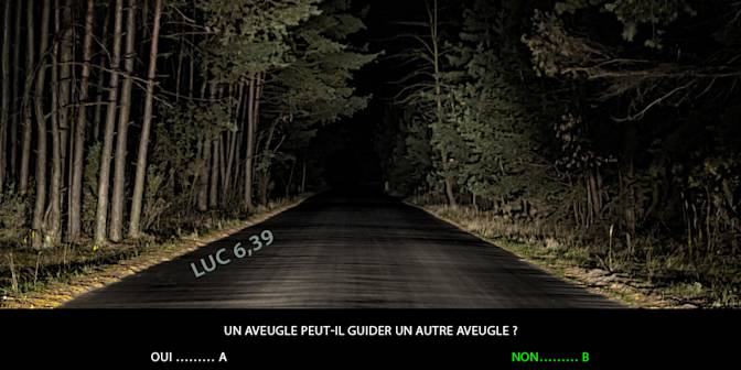 En ce temps-là, Jésus disait à ses disciples en parabole : « Un aveugle peut-il guider un autre aveugle ? Ne vont-ils pas tomber tous les deux dans un trou ? Le disciple n’est pas au-dessus du maître ; mais une fois bien formé, chacun sera comme son maître. Qu’as-tu à regarder la paille dans l’œil de ton frère, alors que la poutre qui est dans ton œil à toi, tu ne la remarques pas ? Comment peux-tu dire à ton frère : ‘Frère, laisse-moi enlever la paille qui est dans ton œil’, alors que toi-même ne vois pas la poutre qui est dans le tien ? Hypocrite ! Enlève d’abord la poutre de ton œil ; alors tu verras clair pour enlever la paille qui est dans l’œil de ton frère. Un bon arbre ne donne pas de fruit pourri ; jamais non plus un arbre qui pourrit ne donne de bon fruit. Chaque arbre, en effet, se reconnaît à son fruit : on ne cueille pas des figues sur des épines ; on ne vendange pas non plus du raisin sur des ronces. L’homme bon tire le bien du trésor de son cœur qui est bon ; et l’homme mauvais tire le mal de son cœur qui est mauvais : car ce que dit la bouche, c’est ce qui déborde du cœur. »