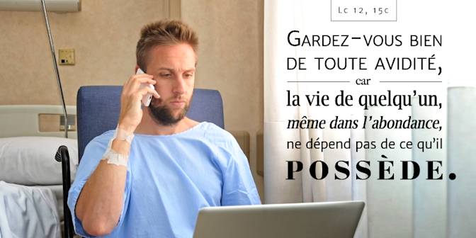 En ce temps-là, du milieu de la foule, quelqu’un demanda à Jésus : « Maître, dis à mon frère de partager avec moi notre héritage. » Jésus lui répondit : « Homme, qui donc m’a établi pour être votre juge ou l’arbitre de vos partages ? » Puis, s’adressant à tous : « Gardez-vous bien de toute avidité, car la vie de quelqu’un, même dans l’abondance, ne dépend pas de ce qu’il possède. » Et il leur dit cette parabole : « Il y avait un homme riche, dont le domaine avait bien rapporté. Il se demandait : “Que vais-je faire ? Car je n’ai pas de place pour mettre ma récolte.” Puis il se dit : “Voici ce que je vais faire : je vais démolir mes greniers, j’en construirai de plus grands et j’y mettrai tout mon blé et tous mes biens. Alors je me dirai à moi-même : Te voilà donc avec de nombreux biens à ta disposition, pour de nombreuses années. Repose-toi, mange, bois, jouis de l’existence.” Mais Dieu lui dit : “Tu es fou : cette nuit même, on va te redemander ta vie. Et ce que tu auras accumulé, qui l’aura ?” Voilà ce qui arrive à celui qui amasse pour lui-même, au lieu d’être riche en vue de Dieu. »