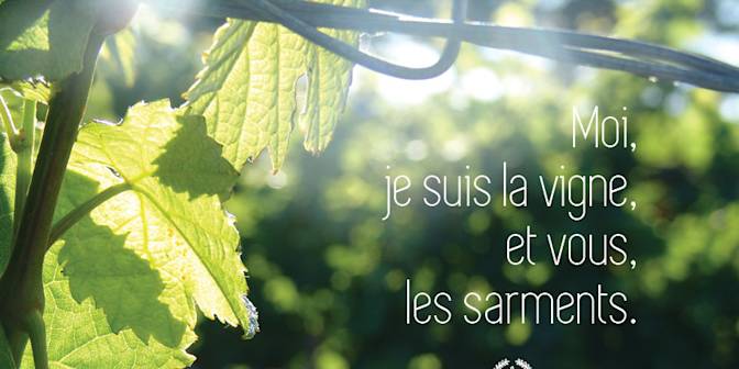 (…) Je suis la vraie vigne et mon Père est le vigneron. Tout sarment qui ne porte pas de fruit, il le retranche ; tout sarment qui donne du fruit, il l’émonde, pour qu’il en donne davantage. Vous êtes déjà purifiés, grâce à ma parole. Demeurez en moi, et moi en vous pour le rester. De même que le sarment coupé de la vigne ne peut donner du fruit, ainsi vous non plus, si vous ne demeurez en moi. Je suis la vigne, et vous les sarments. Celui qui reste uni à moi porte beaucoup de fruit. Mais si l’un se détache, il devient un rameau sec que l’on jette au feu et que l’on brûle : car si vous ne m’êtes pas uni, vous ne pouvez rien faire. Si vous demeurez en moi, et que mes paroles demeurent en vous, demandez tout ce que vous voudrez, et vous l’obtiendrez. Ce qui glorifie mon Père, c’est que vous portiez beaucoup de fruit, et qu’ainsi vous deveniez mes disciples. (…)