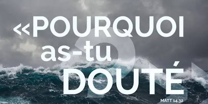 Aussitôt après avoir nourri la foule dans le désert, Jésus obligea les disciples à monter dans la barque et à le précéder sur l’autre rive, pendant qu’il renverrait les foules. Quand il les eut renvoyées, il gravit la montagne, à l’écart, pour prier. Le soir venu, il était là, seul. La barque était déjà à une bonne distance de la terre, elle était battue par les vagues, car le vent était contraire. Vers la fin de la nuit, Jésus vint vers eux en marchant sur la mer. En le voyant marcher sur la mer, les disciples furent bouleversés. Ils dirent : « C’est un fantôme. » Pris de peur, ils se mirent à crier. Mais aussitôt Jésus leur parla : « Confiance ! c’est moi ; n’ayez plus peur ! » Pierre prit alors la parole : « Seigneur, si c’est bien toi, ordonne-moi de venir vers toi sur les eaux. » Jésus lui dit : « Viens ! » Pierre descendit de la barque et marcha sur les eaux pour aller vers Jésus. Mais, voyant la force du vent, il eut peur et, comme il commençait à enfoncer, il cria : « Seigneur, sauve-moi ! » Aussitôt, Jésus étendit la main, le saisit et lui dit : « Homme de peu de foi, pourquoi as-tu douté ? » Et quand ils furent montés dans la barque, le vent tomba. Alors ceux qui étaient dans la barque se prosternèrent devant lui, et ils lui dirent : « Vraiment, tu es le Fils de Dieu ! »