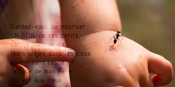 À ce moment-là, les disciples s’approchèrent de Jésus et lui dirent : « Qui donc est le plus grand dans le royaume des Cieux ? » Alors Jésus appela un petit enfant ; il le plaça au milieu d’eux, et il déclara : « Amen, je vous le dis : si vous ne changez pas pour devenir comme les enfants, vous n’entrerez pas dans le royaume des Cieux. Mais celui qui se fera petit comme cet enfant, celui-là est le plus grand dans le royaume des Cieux. Et celui qui accueille un enfant comme celui-ci en mon nom, il m’accueille, moi. Gardez-vous de mépriser un seul de ces petits, car, je vous le dis, leurs anges dans les cieux voient sans cesse la face de mon Père qui est aux cieux. Quel est votre avis ? Si un homme possède cent brebis et que l’une d’entre elles s’égare, ne va-t-il pas laisser les 99 autres dans la montagne pour partir à la recherche de la brebis égarée ? Et, s’il arrive à la retrouver, amen, je vous le dis : il se réjouit pour elle plus que pour les 99 qui ne se sont pas égarées. Ainsi, votre Père qui est aux cieux ne veut pas qu’un seul de ces petits soit perdu. »