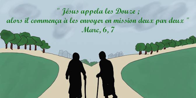 En ce temps-là, Jésus appela les Douze ; alors il commença à les envoyer en mission deux par deux. Il leur donnait autorité sur les esprits impurs, et il leur prescrivit de ne rien prendre pour la route, mais seulement un bâton ; pas de pain, pas de sac, pas de pièces de monnaie dans leur ceinture. « Mettez des sandales, ne prenez pas de tunique de rechange. » Il leur disait encore : « Quand vous avez trouvé l’hospitalité dans une maison, restez-y jusqu’à votre départ. Si, dans une localité, on refuse de vous accueillir et de vous écouter, partez et secouez la poussière de vos pieds : ce sera pour eux un témoignage. » Ils partirent, et proclamèrent qu’il fallait se convertir. Ils expulsaient beaucoup de démons, faisaient des onctions d’huile à de nombreux malades, et les guérissaient.