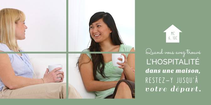 Vous prendrez donc des renseignements sur la famille dont la vie est la plus correcte, là où les femmes savent rester à part, et où les mœurs sont intègres. Vous entrerez là et y demeurerez jusqu’à votre départ de la localité. N’imitez pas les faux bourdons qui, après avoir butiné une fleur, passent à une autre plus nourrissante. Vous, restez où vous êtes, que vous soyez pris en charge par des gens qui vous offrent bon gîte et bonne chère, ou par une famille qui n’est riche que de vertus. Ne cherchez jamais ce qui est “ le mieux ” pour le corps qui périt : au contraire, donnez-lui toujours ce qu’il y a de plus mauvais, en réservant tous les droits à votre âme. En outre – je vous le dis parce qu’il est bon que vous le fassiez –, donnez la préférence aux pauvres pour votre séjour, dès que vous le pourrez. Pour ne pas les humilier, en souvenir de moi qui suis et reste pauvre – et qui m’en fais gloire –, et aussi parce que les pauvres sont souvent meilleurs que les riches. Vous trouverez toujours des pauvres qui sont justes alors que vous aurez rarement l’occasion de trouver un riche sans injustice. Vous n’avez donc pas l’excuse de dire : “ Je n’ai trouvé de bonté que chez les riches ” pour justifier votre désir de confort.