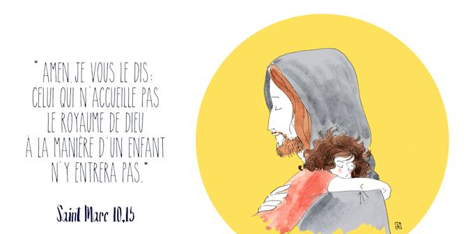 En ce temps-là, des gens présentaient à Jésus des enfants pour qu’il pose la main sur eux ; mais les disciples les écartèrent vivement. Voyant cela, Jésus se fâcha et leur dit : « Laissez les enfants venir à moi, ne les empêchez pas, car le royaume de Dieu est à ceux qui leur ressemblent. Amen, je vous le dis : celui qui n’accueille pas le royaume de Dieu à la manière d’un enfant n’y entrera pas. » Il les embrassait et les bénissait en leur imposant les mains.