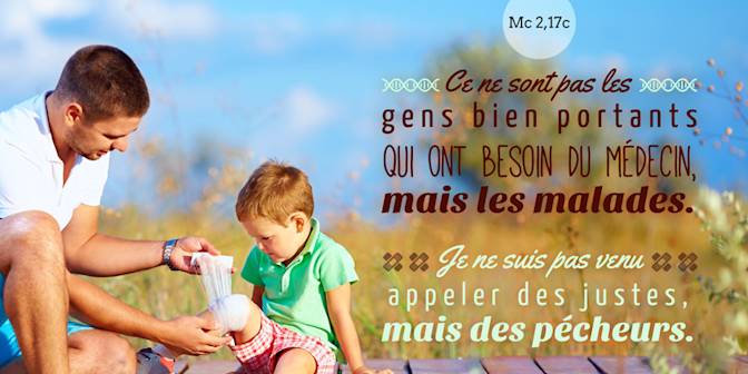 En ce temps-là, Jésus sortit de nouveau le long de la mer ; toute la foule venait à lui, et il les enseignait. En passant, il aperçut Lévi, fils d’Alphée, assis au bureau des impôts. Il lui dit : « Suis-moi. » L’homme se leva et le suivit. Comme Jésus était à table dans la maison de Lévi, beaucoup de publicains (c’est-à-dire des collecteurs d’impôts) et beaucoup de pécheurs vinrent prendre place avec Jésus et ses disciples, car ils étaient nombreux à le suivre. Les scribes du groupe des pharisiens, voyant qu’il mangeait avec les pécheurs et les publicains, disaient à ses disciples : « Comment ! Il mange avec les publicains et les pécheurs ! » Jésus, qui avait entendu, leur déclara : « Ce ne sont pas les gens bien portants qui ont besoin du médecin, mais les malades. Je ne suis pas venu appeler des justes, mais des pécheurs. »