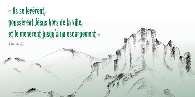 En ce temps-là, dans la synagogue de Nazareth, après la lecture du livre d’Isaïe, Jésus déclara : « Aujourd’hui s’accomplit ce passage de l’Écriture que vous venez d’entendre » Tous lui rendaient témoignage et s’étonnaient des paroles de grâce qui sortaient de sa bouche. Ils se disaient : « N’est-ce pas là le fils de Joseph ? » Mais il leur dit : « Sûrement vous allez me citer le dicton : ‘Médecin, guéris-toi toi-même’, et me dire : ‘Nous avons appris tout ce qui s’est passé à Capharnaüm : fais donc de même ici dans ton lieu d’origine !’ » Puis il ajouta : « Amen, je vous le dis : aucun prophète ne trouve un accueil favorable dans son pays.. En vérité, je vous le dis : Au temps du prophète Élie, lorsque pendant trois ans et demi le ciel retint la pluie, et qu’une grande famine se produisit sur toute la terre, il y avait beaucoup de veuves en Israël ; pourtant Élie ne fut envoyé vers aucune d’entre elles, mais bien dans la ville de Sarepta, au pays de Sidon, chez une veuve étrangère. Au temps du prophète Élisée, il y avait beaucoup de lépreux en Israël ; et aucun d’eux n’a été purifié, mais bien Naaman le Syrien. » À ces mots, dans la synagogue, tous devinrent furieux. Ils se levèrent, poussèrent Jésus hors de la ville, et le menèrent jusqu’à un escarpement de la colline où leur ville est construite, pour le précipiter en bas. Mais lui, passant au milieu d’eux, allait son chemin.
