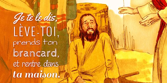 « Pourquoi ces murmures, dans vos cœurs plus encore que sur vos lèvres ? D’après vous, est-il plus facile de dire au paralytique : “ Tes péchés te sont remis ”, ou bien : “ Lève-toi, prends ton grabat et marche ” ? Vous pensez que seul Dieu peut remettre les péchés, mais vous ne savez pas dire ce qu’il y a de plus grand, car cet homme, qui a perdu l’usage de ses facultés corporelles, a dépensé toutes ses ressources sans qu’on puisse le guérir. Il n’y a que Dieu qui ait ce pouvoir. Or, pour que vous sachiez que je peux tout, pour que vous sachiez que le Fils de l’homme a pouvoir sur la chair et sur l’âme, sur la terre et au Ciel, je dis à cet homme : “ Lève-toi, prends ton grabat et marche. Rentre chez toi et sois saint. ” »