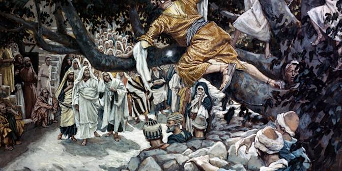 En ce temps-là, entré dans la ville de Jéricho, Jésus la traversait. Or, il y avait un homme du nom de Zachée ; il était le chef des collecteurs d’impôts, et c’était quelqu’un de riche. Il cherchait à voir qui était Jésus, mais il ne le pouvait pas à cause de la foule, car il était de petite taille. Il courut donc en avant et grimpa sur un sycomore pour voir Jésus qui allait passer par là. Arrivé à cet endroit, Jésus leva les yeux et lui dit : « Zachée, descends vite : aujourd’hui il faut que j’aille demeurer dans ta maison. » Vite, il descendit et reçut Jésus avec joie. Voyant cela, tous récriminaient : « Il est allé loger chez un homme qui est un pécheur. » Zachée, debout, s’adressa au Seigneur : « Voici, Seigneur : je fais don aux pauvres de la moitié de mes biens, et si j’ai fait du tort à quelqu’un, je vais lui rendre quatre fois plus. » Alors Jésus dit à son sujet : « Aujourd’hui, le salut est arrivé pour cette maison, car lui aussi est un fils d’Abraham. En effet, le Fils de l’homme est venu chercher et sauver ce qui était perdu. »