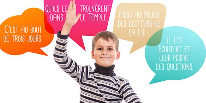Chaque année, les parents de Jésus se rendaient à Jérusalem pour la fête de la Pâque. Quand il eut douze ans, ils montèrent en pèlerinage suivant la coutume. À la fin de la fête, comme ils s’en retournaient, le jeune Jésus resta à Jérusalem à l’insu de ses parents. Pensant qu’il était dans le convoi des pèlerins, ils firent une journée de chemin avant de le chercher parmi leurs parents et connaissances. Ne le trouvant pas, ils retournèrent à Jérusalem, en continuant à le chercher. C’est au bout de trois jours qu’ils le trouvèrent dans le Temple, assis au milieu des docteurs de la Loi : il les écoutait et leur posait des questions, et tous ceux qui l’entendaient s’extasiaient sur son intelligence et sur ses réponses. En le voyant, ses parents furent frappés d’étonnement, et sa mère lui dit : « Mon enfant, pourquoi nous as-tu fait cela ? Vois comme ton père et moi, nous avons souffert en te cherchant ! » Il leur dit : « Comment se fait-il que vous m’ayez cherché ? Ne saviez-vous pas qu’il me faut être chez mon Père ? » Mais ils ne comprirent pas ce qu’il leur disait. Il descendit avec eux pour se rendre à Nazareth, et il leur était soumis. Sa mère gardait dans son cœur tous ces événements. Quant à Jésus, il grandissait en sagesse, en taille et en grâce, devant Dieu et devant les hommes.