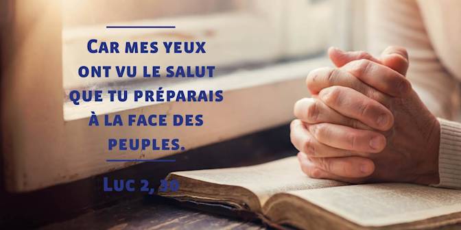 Quand fut accompli le temps prescrit par la loi de Moïse pour la purification, les parents de Jésus l’amenèrent à Jérusalem pour le présenter au Seigneur, selon ce qui est écrit dans la Loi : Tout premier-né de sexe masculin sera consacré au Seigneur. Ils venaient aussi offrir le sacrifice prescrit par la loi du Seigneur : un couple de tourterelles ou deux petites colombes. Or, il y avait à Jérusalem un homme appelé Syméon. C’était un homme juste et religieux, qui attendait la Consolation d’Israël, et l’Esprit Saint était sur lui. Il avait reçu de l’Esprit Saint l’annonce qu’il ne verrait pas la mort avant d’avoir vu le Christ, le Messie du Seigneur. Sous l’action de l’Esprit, Syméon vint au Temple. Au moment où les parents présentaient l’enfant Jésus pour se conformer au rite de la Loi qui le concernait, Syméon reçut l’enfant dans ses bras, et il bénit Dieu en disant : « Maintenant, ô Maître souverain, tu peux laisser ton serviteur s’en aller en paix, selon ta parole. Car mes yeux ont vu le salut que tu préparais à la face des peuples : lumière qui se révèle aux nations et donne gloire à ton peuple Israël. » Le père et la mère de l’enfant s’étonnaient de ce qui était dit de lui. Syméon les bénit, puis il dit à Marie sa mère : « Voici que cet enfant provoquera la chute et le relèvement de beaucoup en Israël. Il sera un signe de contradiction – et toi, ton âme sera traversée d’un glaive – : ainsi seront dévoilées les pensées qui viennent du cœur d’un grand nombre. » Il y avait aussi une femme prophète, Anne, fille de Phanuel, de la tribu d’Aser. Elle était très avancée en âge ; après sept ans de mariage, demeurée veuve, elle était arrivée à l’âge de 84 ans. Elle ne s’éloignait pas du Temple, servant Dieu jour et nuit dans le jeûne et la prière. Survenant à cette heure même, elle proclamait les louanges de Dieu et parlait de l’enfant à tous ceux qui attendaient la délivrance de Jérusalem. Lorsqu’ils eurent achevé tout ce que prescrivait la loi du Seigneur, ils retournèrent en Galilée, dans leur ville de Nazareth. L’enfant, lui, grandissait et se fortifiait, rempli de sagesse, et la grâce de Dieu était sur lui.