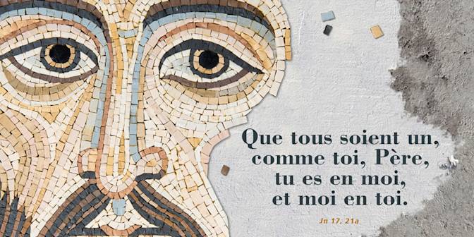 En ce temps-là, les yeux levés au ciel, Jésus priait ainsi : « Père saint, je ne prie pas seulement pour ceux qui sont là, mais encore pour ceux qui, grâce à leur parole, croiront en moi. Que tous soient un, comme toi, Père, tu es en moi, et moi en toi. Qu’ils soient un en nous, eux aussi, pour que le monde croie que tu m’as envoyé. Et moi, je leur ai donné la gloire que tu m’as donnée, pour qu’ils soient un comme nous sommes UN : moi en eux, et toi en moi. Qu’ils deviennent ainsi parfaitement un, afin que le monde sache que tu m’as envoyé, et que tu les as aimés comme tu m’as aimé. Père, ceux que tu m’as donnés, je veux que là où je suis, ils soient eux aussi avec moi, et qu’ils contemplent ma gloire, celle que tu m’as donnée parce que tu m’as aimé avant la fondation du monde. Père juste, le monde ne t’a pas connu, mais moi je t’ai connu, et ceux-ci ont reconnu que tu m’as envoyé. Je leur ai fait connaître ton nom, et je le ferai connaître, pour que l’amour dont tu m’as aimé soit en eux, et que moi aussi, je sois en eux. »