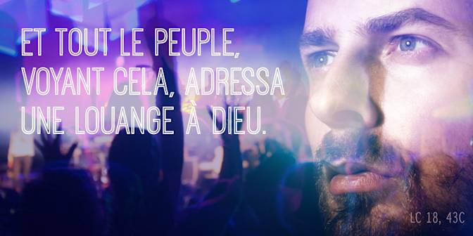Alors Jésus reprend sa marche au milieu des louanges de la foule, auxquels Bartimée se joint, criant hosanna avec les autres, et disant :