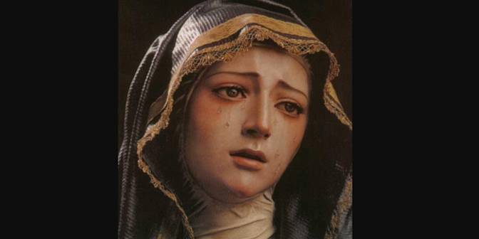 (...) Mais comment, toi qui sais tout, puisque tu es la Sagesse infinie, ne connais-tu pas la douleur de ta Maman ? Ne peux-tu te l’imaginer en te rappelant ce moment où je t’ai perdu à Jérusalem et où tu m’as vue fendre la foule autour de toi, avec le visage d’un naufragé qui atteint le rivage après une longue lutte contre l’eau et la mort, avec le visage d’une femme qui sort d’une torture, épuisée, ayant perdu son sang, vieillie, brisée ? Et encore, je pouvais penser que tu étais seulement perdu, je pouvais avoir cette illusion. Mais pas aujourd’hui. Je sais bien que tu es mort. L’illusion n’est pas possible. Je t’ai vu être tué. Même si la douleur me le faisait oublier, voici ton sang sur mon voile, qui me crie : “ Il est mort ! Il n’a plus de sang ! Celui-ci est le dernier sorti de son cœur ! ” De son cœur ! du cœur de mon Enfant, de mon Fils ! de mon Jésus ! Mon Dieu ! Dieu de pitié, ne me fais pas souvenir qu’on lui a ouvert le cœur…