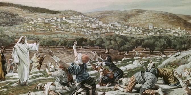 Subjugués par l’autorité du Maître, les gens obéissent. Il s’avance à travers les hautes herbes fleuries jusqu’à quelques pas du lépreux qui, à son tour, s’est approché quand il a compris que Jésus le protégeait.