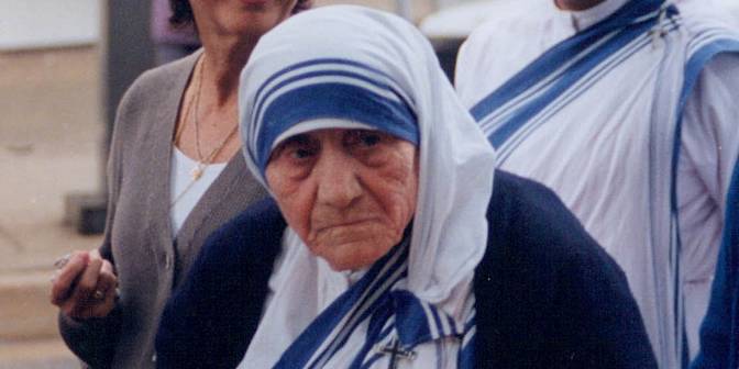Sainte Teresa (1910-1997), fondatrice et patronne des Missionnaires de la Charité. En 1979, elle reçoit le prix Nobel de la paix. Elle est béatifiée le 19 octobre 2003, à Rome, par le pape Jean-Paul II et canonisée le 4 septembre 2016 par le pape François.
