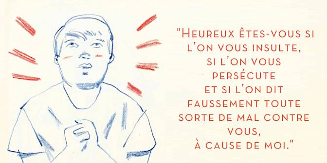 Bienheureux si, par fidélité à la justice, je suis persécuté : pour me dédommager des persécutions de la terre, Dieu, mon Père, me donnera le Royaume des Cieux !