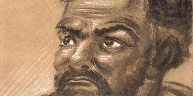 Quand il relève la tête, timide, confus, il ne sait faire qu’un geste pour dire tout, pour promettre tout, pour se donner tout entier à son nouveau ministère : celui de jeter ses bras courts et musclés au cou de Jésus et l’obliger à se pencher pour l’embrasser, en mêlant sa barbe et ses cheveux un peu hérissés et grisonnants, à la barbe et aux cheveux soyeux et dorés de Jésus. Puis il le regarde d’un regard plein d’adoration, affectueux, suppliant de ses yeux un peu bovins, luisants et rougis par les larmes qu’il a versées, en tenant dans ses mains calleuses, larges, épaisses, le visage ascétique du Maître penché sur le sien, comme si c’était un vase d’où coulait une liqueur vivifiante… et il boit, boit, boit douceur et grâce, sécurité et force, de ce visage, de ces yeux, de ce sourire…