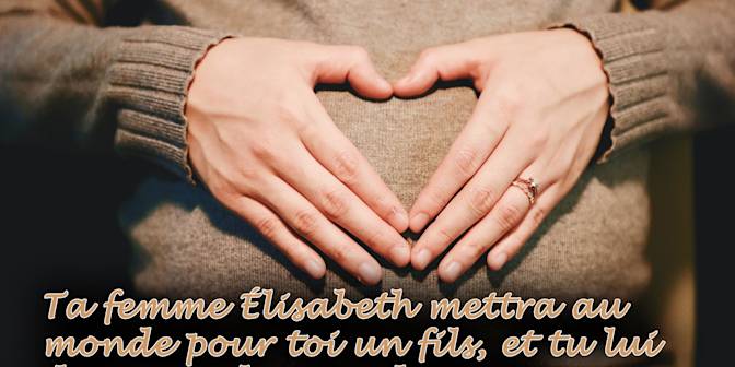 (...) Ah, quelle douleur que de le voir muet, mon Zacharie ! Mais j’ai bon espoir que, après la naissance de notre enfant, son père sera lui aussi délivré de son châtiment. Prie, toi qui es le siège de la puissance de Dieu et la cause de la joie du monde. Pour l’obtenir, j’offre, comme je le peux, mon enfant au Seigneur : il est à lui, puisqu’il l’a prêté à sa servante pour lui donner la joie d’être appelée “ mère ”. Il est le témoignage de ce que Dieu a fait pour moi. Je désire qu’il s’appelle “ Jean ”. N’est-il pas une grâce, mon enfant ? Et n’est-ce pas Dieu qui me l’a faite ?