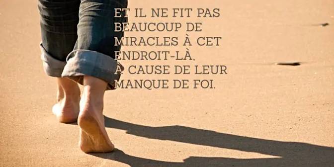 En ce temps-là, Jésus se rendit dans son lieu d’origine, et il enseignait les gens dans leur synagogue, de telle manière qu’ils étaient frappés d’étonnement et disaient : « D’où lui viennent cette sagesse et ces miracles ? N’est-il pas le fils du charpentier ? Sa mère ne s’appelle-t-elle pas Marie, et ses frères : Jacques, Joseph, Simon et Jude ? Et ses sœurs ne sont-elles pas toutes chez nous ? Alors, d’où lui vient tout cela ? » Et ils étaient profondément choqués à son sujet. Jésus leur dit : « Un prophète n’est méprisé que dans son pays et dans sa propre maison. » Et il ne fit pas beaucoup de miracles à cet endroit-là, à cause de leur manque de foi.