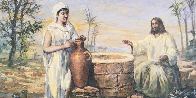 En ce temps-là, Jésus arriva à une ville de Samarie, appelée Sykar, près du terrain que Jacob avait donné à son fils Joseph. Là se trouvait le puits de Jacob. Jésus, fatigué par la route, s’était donc assis près de la source. C’était la sixième heure, environ midi. Arrive une femme de Samarie, qui venait puiser de l’eau. Jésus lui dit : « Donne-moi à boire. » – En effet, ses disciples étaient partis à la ville pour acheter des provisions. La Samaritaine lui dit : « Comment ! Toi, un Juif, tu me demandes à boire, à moi, une Samaritaine ? » – En effet, les Juifs ne fréquentent pas les Samaritains. Jésus lui répondit : « Si tu savais le don de Dieu et qui est celui qui te dit : ‘Donne-moi à boire’, c’est toi qui lui aurais demandé, et il t’aurait donné de l’eau vive. » Elle lui dit : « Seigneur, tu n’as rien pour puiser, et le puits est profond. D’où as-tu donc cette eau vive ? Serais-tu plus grand que notre père Jacob qui nous a donné ce puits, et qui en a bu lui-même, avec ses fils et ses bêtes ? » Jésus lui répondit : « Quiconque boit de cette eau aura de nouveau soif ; mais celui qui boira de l’eau que moi je lui donnerai n’aura plus jamais soif ; et l’eau que je lui donnerai deviendra en lui une source d’eau jaillissant pour la vie éternelle. » La femme lui dit : « Seigneur, donne-moi de cette eau, que je n’aie plus soif, et que je n’aie plus à venir ici pour puiser. » Jésus lui dit : « Va, appelle ton mari, et reviens. » La femme répliqua : « Je n’ai pas de mari. » Jésus reprit : « Tu as raison de dire que tu n’as pas de mari : des maris, tu en a eu cinq, et celui que tu as maintenant n’est pas ton mari ; là, tu dis vrai. » La femme lui dit : « Seigneur, je vois que tu es un prophète !... Eh bien ! Nos pères ont adoré sur la montagne qui est là, et vous, les Juifs, vous dites que le lieu où il faut adorer est à Jérusalem. » Jésus lui dit : « Femme, crois-moi : l’heure vient où vous n’irez plus ni sur cette montagne ni à Jérusalem pour adorer le Père. Vous, vous adorez ce que vous ne connaissez pas ; nous, nous adorons ce que nous connaissons, car le salut vient des Juifs. Mais l’heure vient – et c’est maintenant – où les vrais adorateurs adoreront le Père en esprit et vérité : tels sont les adorateurs que recherche le Père. Dieu est esprit, et ceux qui l’adorent, c’est en esprit et vérité qu’ils doivent l’adorer. » La femme lui dit : « Je sais qu’il vient, le Messie, celui qu’on appelle Christ. Quand il viendra, c’est lui qui nous fera connaître toutes choses. » Jésus lui dit : « Je le suis, moi qui te parle. » À ce moment-là, ses disciples arrivèrent ; ils étaient surpris de le voir parler avec une femme. Pourtant, aucun ne lui dit : « Que cherches-tu ? » ou bien : « Pourquoi parles-tu avec elle ? » La femme, laissant là sa cruche, revint à la ville et dit aux gens : « Venez voir un homme qui m’a dit tout ce que j’ai fait. Ne serait-il pas le Christ ? » Ils sortirent de la ville, et ils se dirigeaient vers lui. Entre-temps, les disciples l’appelaient : « Rabbi, viens manger. » Mais il répondit : « Pour moi, j’ai de quoi manger : c’est une nourriture que vous ne connaissez pas. » Les disciples se disaient entre eux : « Quelqu’un lui aurait-il apporté à manger ? » Jésus leur dit : « Ma nourriture, c’est de faire la volonté de Celui qui m’a envoyé et d’accomplir son œuvre. Ne dites-vous pas : ‘Encore quatre mois et ce sera la moisson’ ? Et moi, je vous dis : Levez les yeux et regardez les champs déjà dorés pour la moisson. Dès maintenant, le moissonneur reçoit son salaire : il récolte du fruit pour la vie éternelle, si bien que le semeur se réjouit en même temps que le moissonneur. Il est bien vrai, le dicton : ‘L’un sème, l’autre moissonne.’ Je vous ai envoyés moissonner ce qui ne vous a coûté aucun effort ; d’autres ont fait l’effort, et vous en avez bénéficié. » Beaucoup de Samaritains de cette ville crurent en Jésus, à cause de la parole de la femme qui rendait ce témoignage : « Il m’a dit tout ce que j’ai fait. » Lorsqu’ils arrivèrent auprès de lui, ils l’invitèrent à demeurer chez eux. Il y demeura deux jours. Ils furent encore beaucoup plus nombreux à croire à cause de sa parole à lui, et ils disaient à la femme : « Ce n’est plus à cause de ce que tu nous as dit que nous croyons : nous-mêmes, nous l’avons entendu, et nous savons que c’est vraiment lui le Sauveur du monde. »